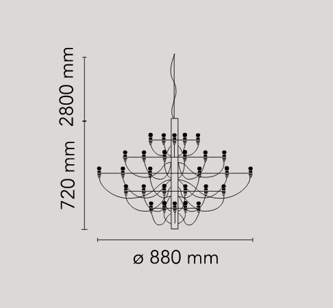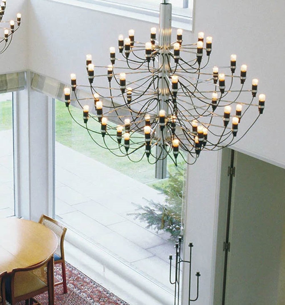 Flos 2097 is verkrijgbaar in verschillende maten en afwerkingen, waardoor het mogelijk is om de variant te vinden die perfect past bij de grootte en stijl van de ruimte. Of hij nu boven de eettafel, in de hal of in een hoge ruimte hangt, hij levert een indrukwekkende visuele expressie en een aangenaam, diffuus licht.