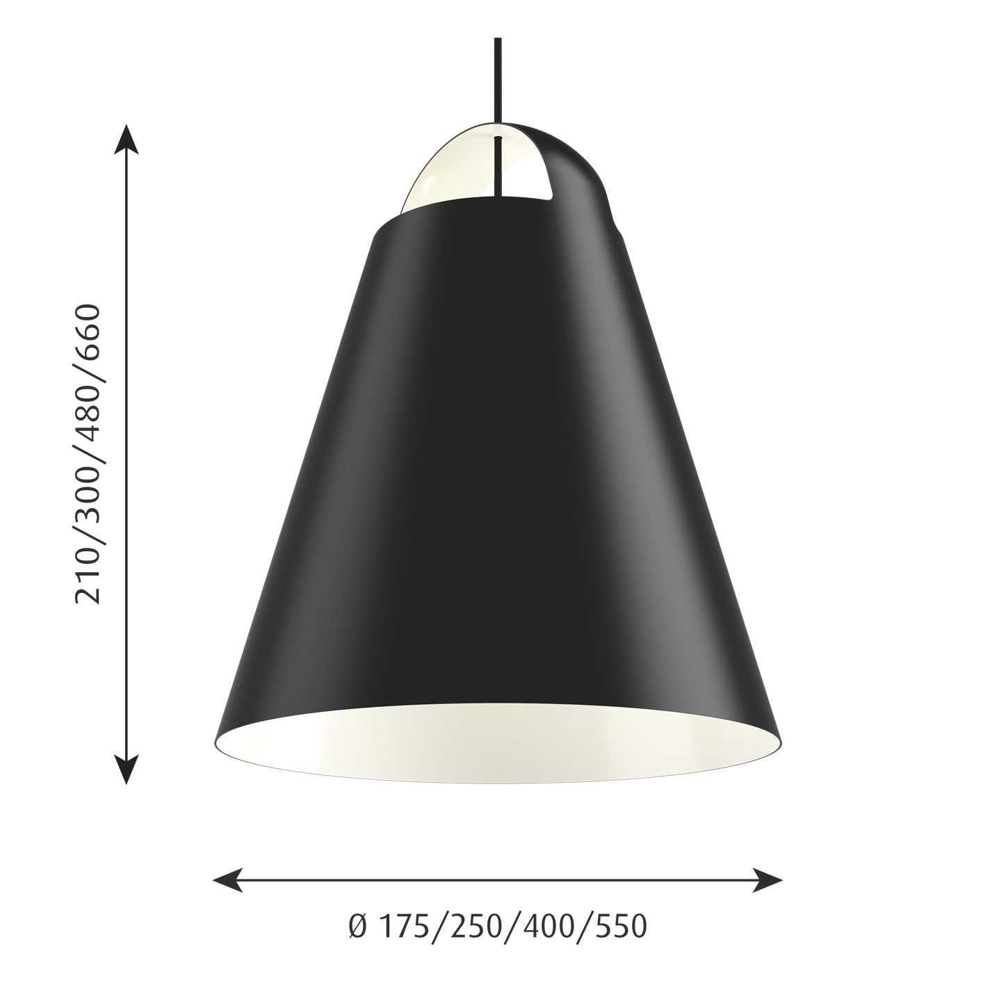 De Above hanglamp is verkrijgbaar in verschillende maten in zwart, wit en wit opaalglas.