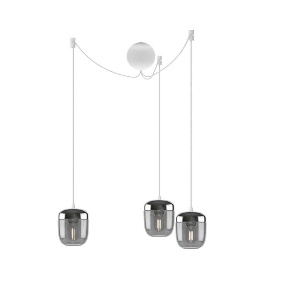 Acorn moet worden gecombineerd met een ophanging, die apart wordt verkocht. Kies bijvoorbeeld uit de E27-ophangingen Cannonball, Cannonball Cluster 2 en 3, Cord Set, Cord Set Pro of Rosette van Umage.