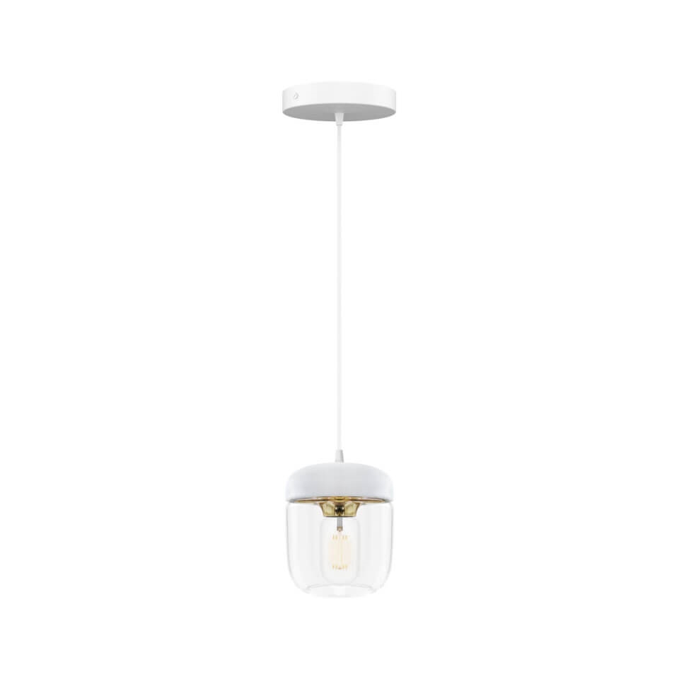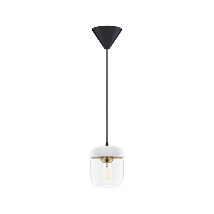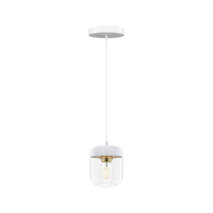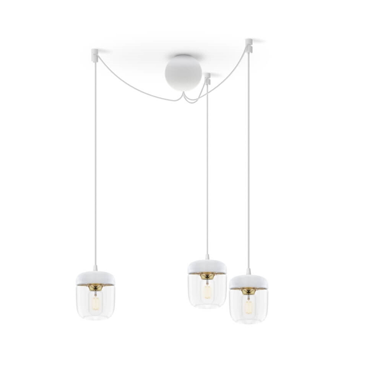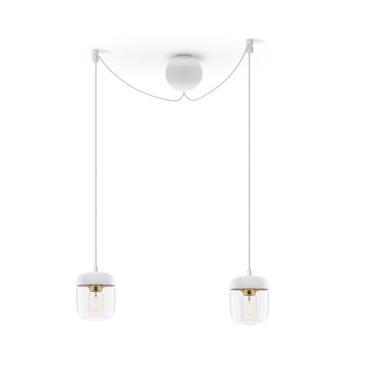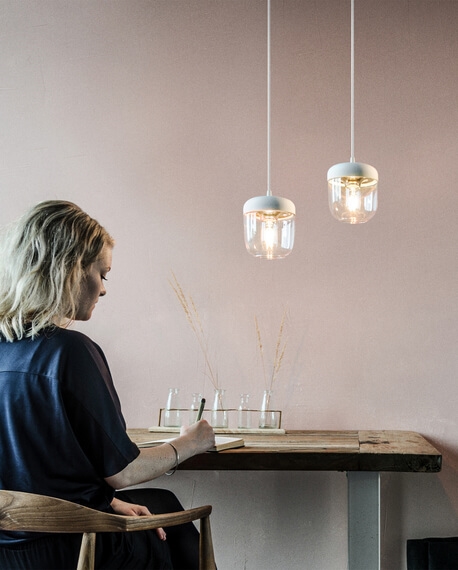 Acorn moet worden gecombineerd met een ophanging, die apart wordt verkocht. Kies bijvoorbeeld uit de E27-ophangingen Cannonball, Cannonball Cluster 2 en 3, Cord Set, Cord Set Pro of Rosette van Umage.