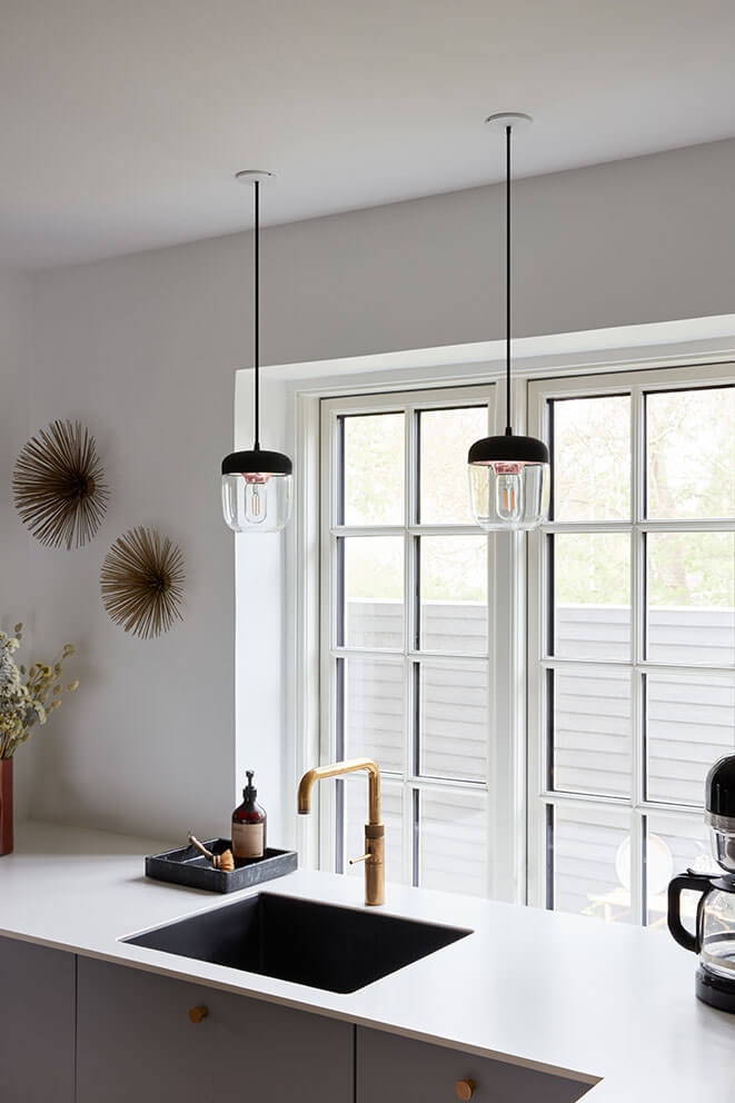 Acorn moet worden gecombineerd met een ophanging, die apart wordt verkocht. Kies bijvoorbeeld uit de E27-ophangingen Cannonball, Cannonball Cluster 2 en 3, Cord Set, Cord Set Pro of Rosette van Umage.