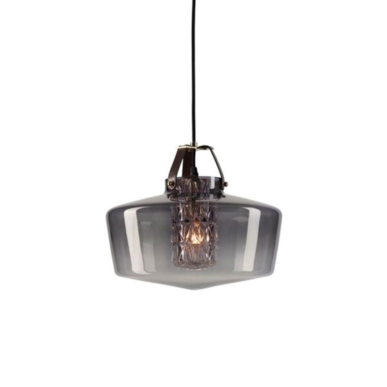 Addicted To Us van Design By Us is een stijlvolle hanglamp van mondgeblazen glas en heeft een mooie afwerking met cognackleurig leer aan de bovenkant.