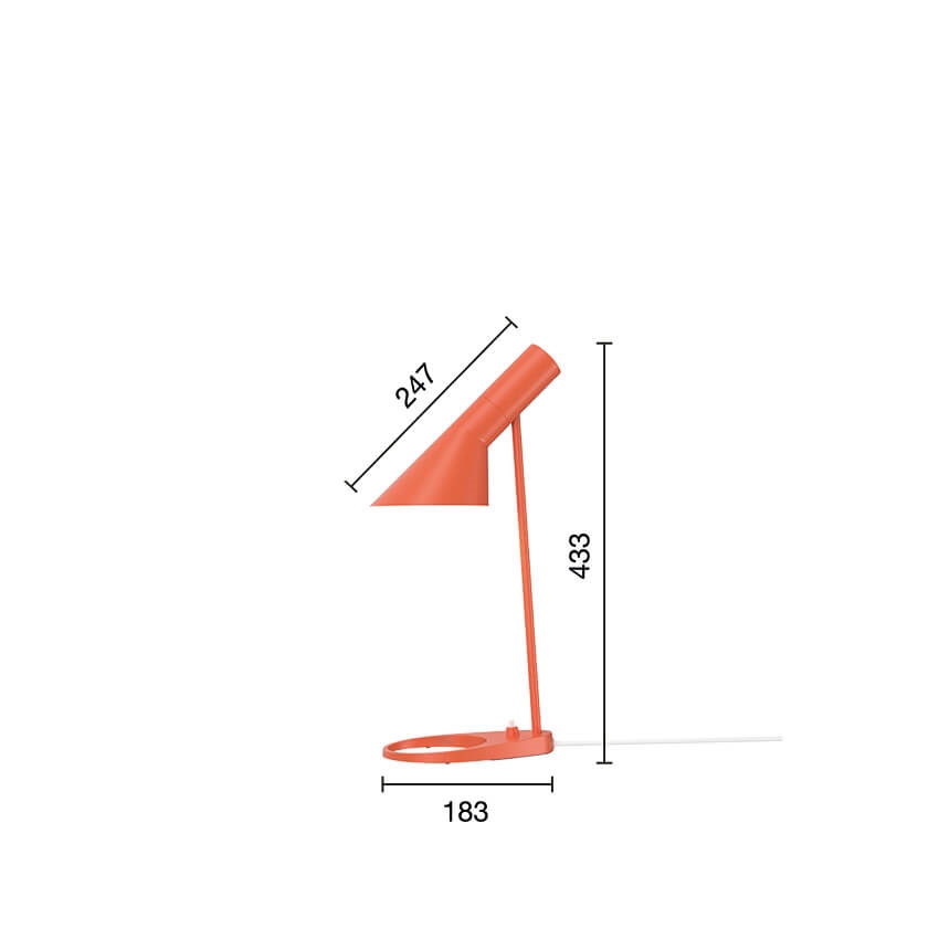 Louis Poulsen AJ Mini tafellamp, electric orange - ontworpen door Arne Jacobsen