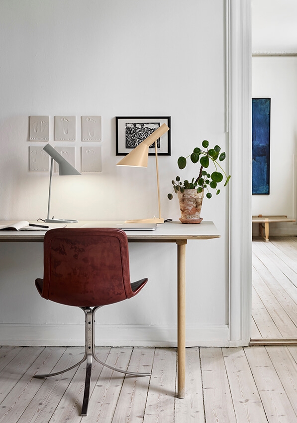 De AJ lamp heeft een karakteristieke zuivere vorm met een combinatie van rechte en gebogen hoeken. De unieke AJ tafellamp biedt een fantastische neerwaartse verlichting en de kap kan ook worden gekanteld, zodat het licht naar behoefte kan worden aangepast.