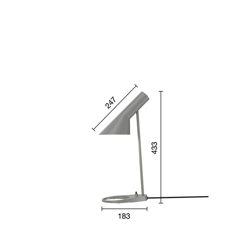 Louis Poulsen AJ Mini tafellamp, grijs - ontworpen door Arne Jacobsen