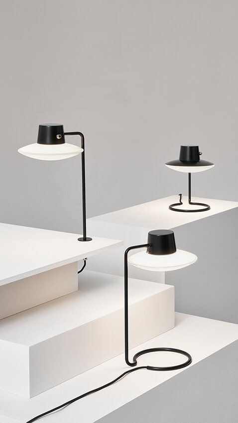 Louis Poulsen AJ Oxford 41 tafellamp m/stok, opaal – ontworpen door Arne Jacobsen.