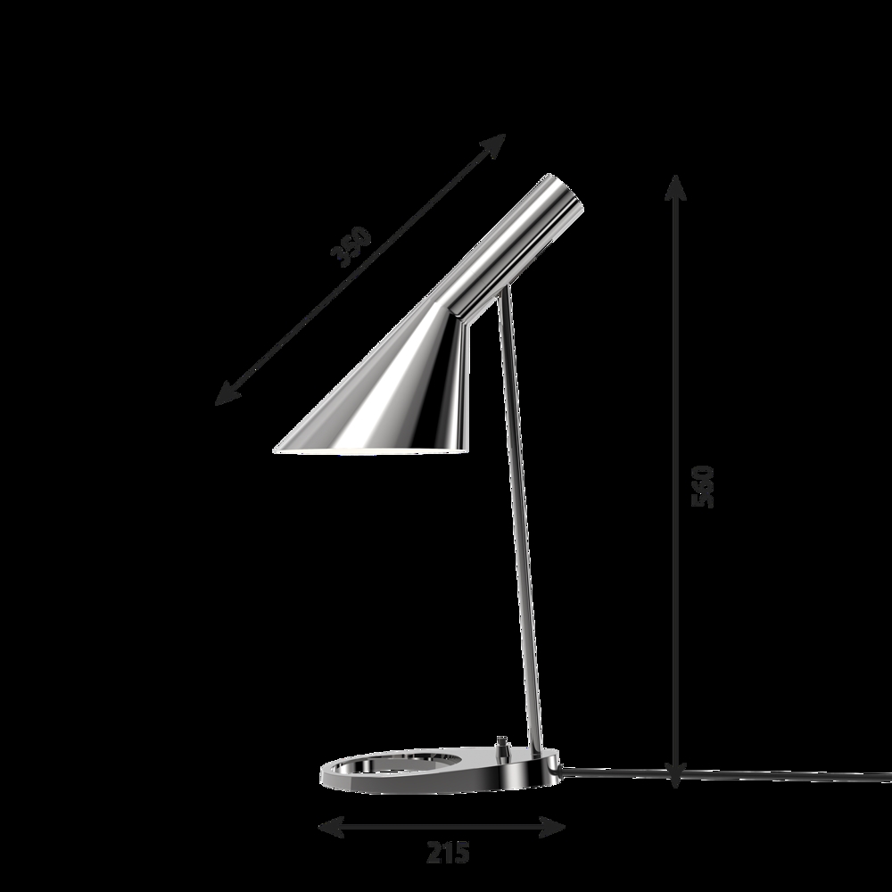 Louis Poulsen AJ tafellamp, gepolijst staal - ontworpen door Arne Jacobsen.