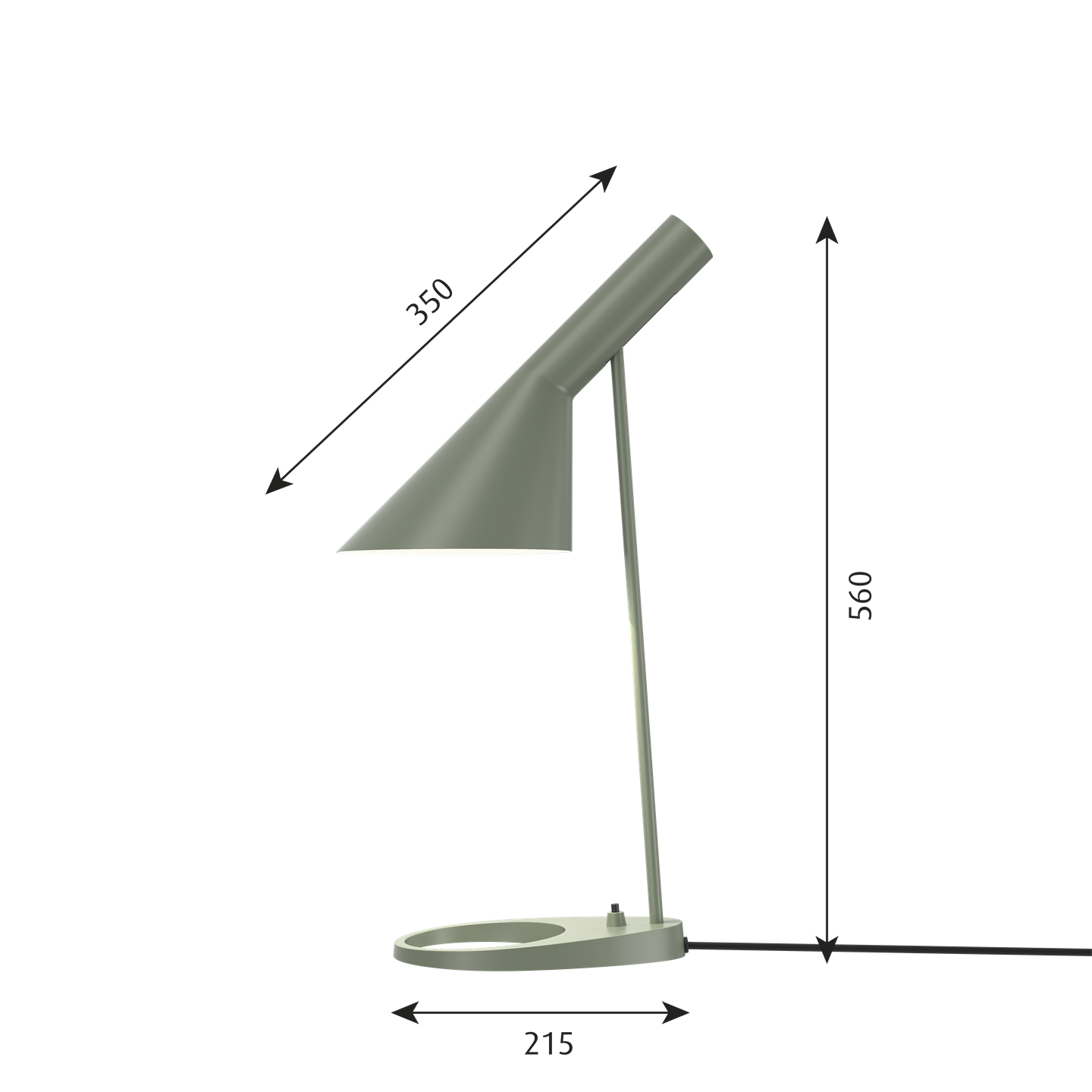 Louis Poulsen AJ tafellamp, licht petroleum - ontworpen door Arne Jacobsen.