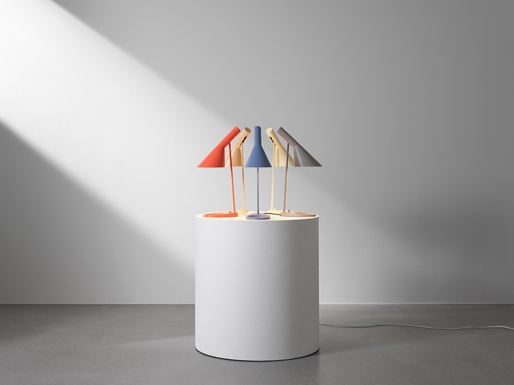 De AJ-serie bestaat uit verschillende lampvarianten in een reeks kleuren.