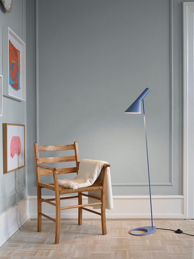 De AJ lamp heeft een karakteristieke zuivere vorm met een combinatie van rechte en gebogen hoeken. De unieke AJ vloerlamp biedt een fantastische neerwaartse verlichting en de kap kan ook worden gekanteld, zodat het licht naar behoefte kan worden aangepast.