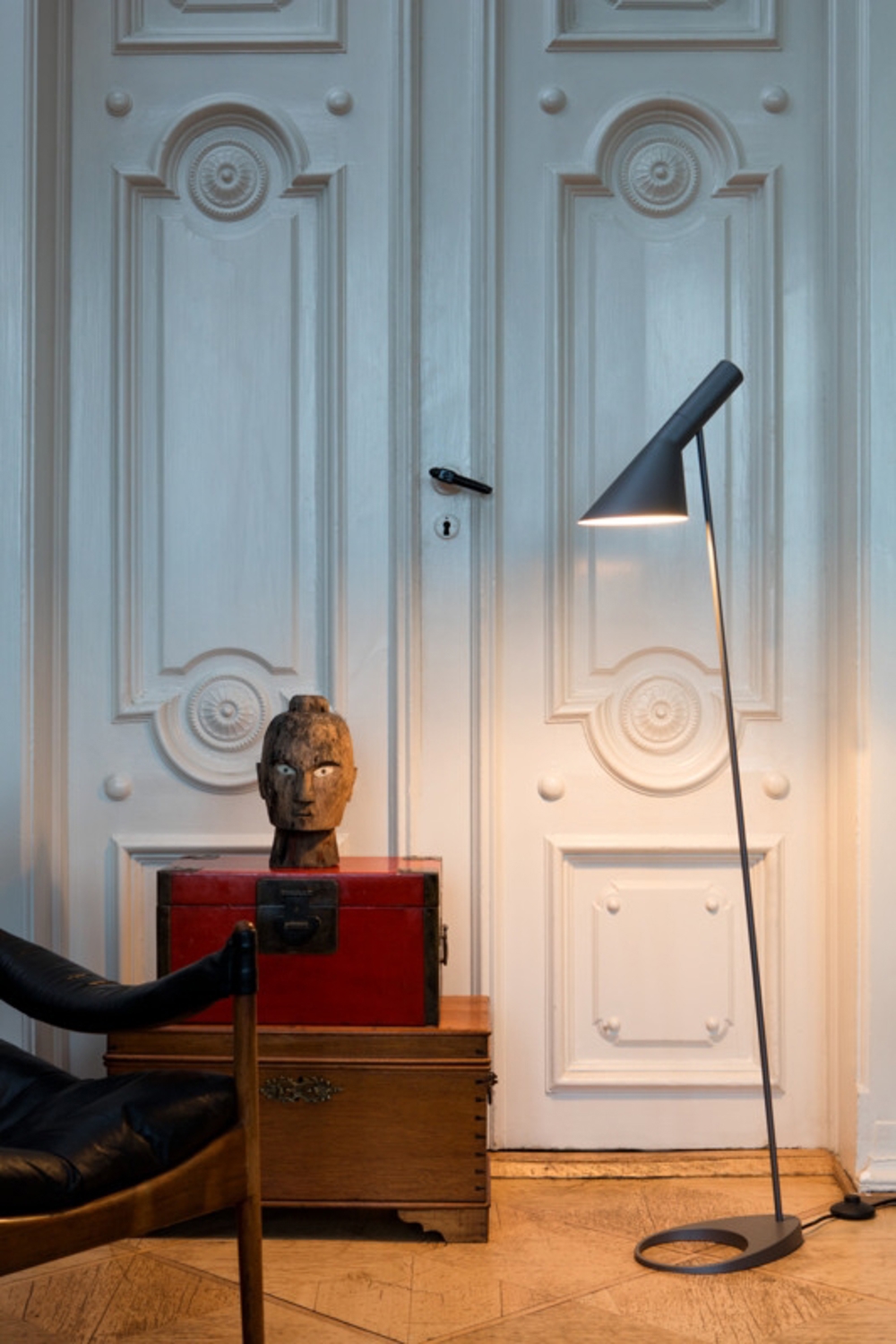 Louis Poulsen AJ vloerlamp, zwart - ontworpen door Arne Jacobsen.