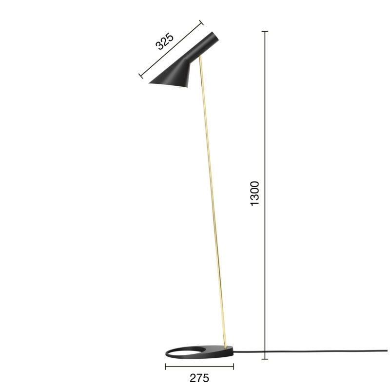 Louis Poulsen AJ vloerlamp, zwart/messing - ontworpen door Arne Jacobsen