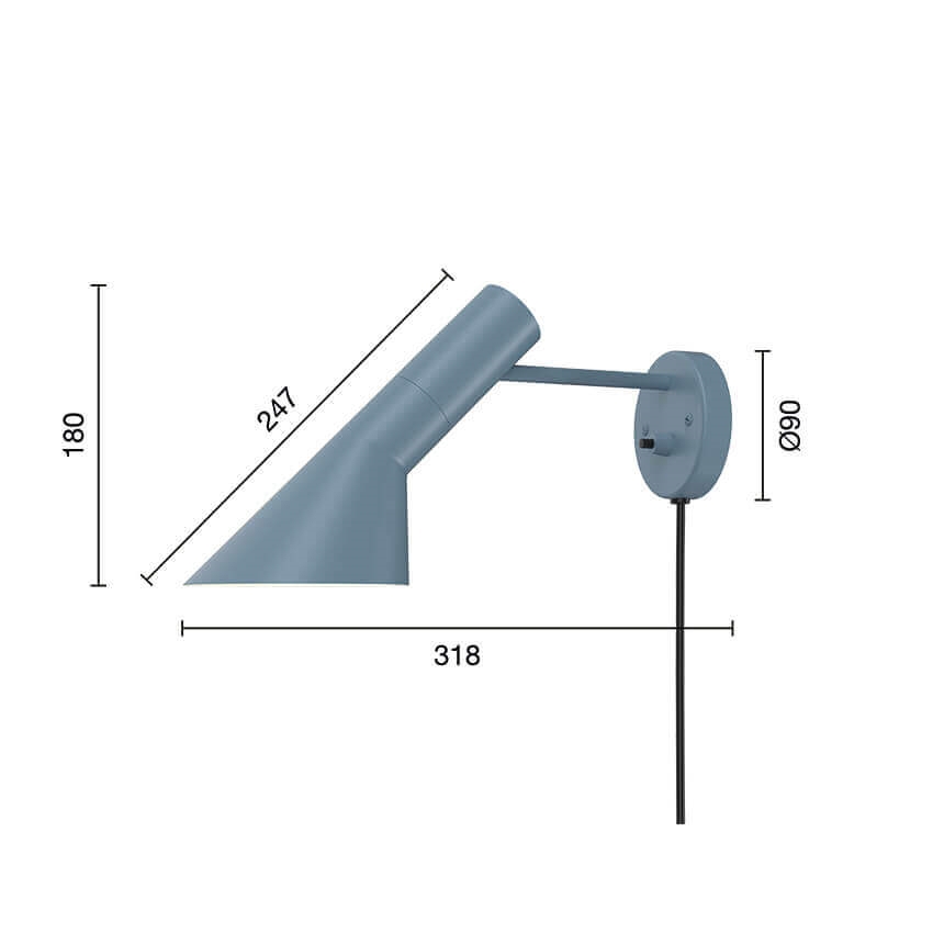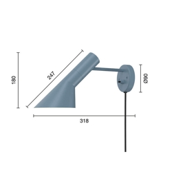 Louis Poulsen AJ wandlamp, dusty blue - Ontworpen door Arne Jacobsen