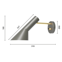 Louis Poulsen AJ wandlamp m/schakelaar, grijs/messing - ontworpen door Arne Jacobsen