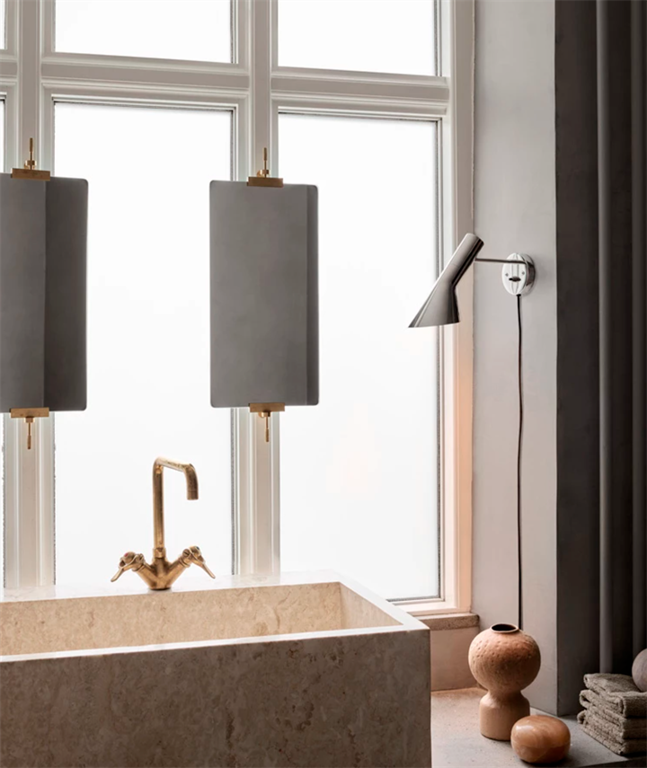 De AJ lamp heeft een karakteristieke zuivere vorm met een combinatie van rechte en gebogen hoeken. De unieke AJ wandlamp biedt een fantastische neerwaartse verlichting, en de kap kan ook worden gekanteld om het licht aan te passen aan uw behoeften.