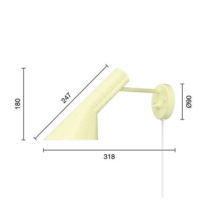 Louis Poulsen AJ wandlamp, soft lemon - ontworpen door Arne Jacobsen
