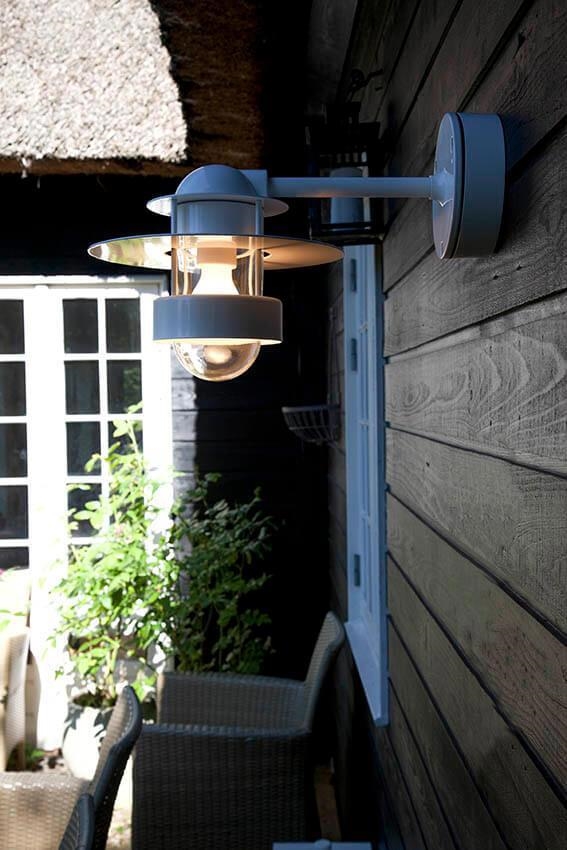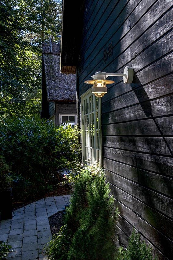 De Albertslund buiten wandlamp is verkrijgbaar met korte en lange arm in gegalvaniseerd staal, grijs en wit.