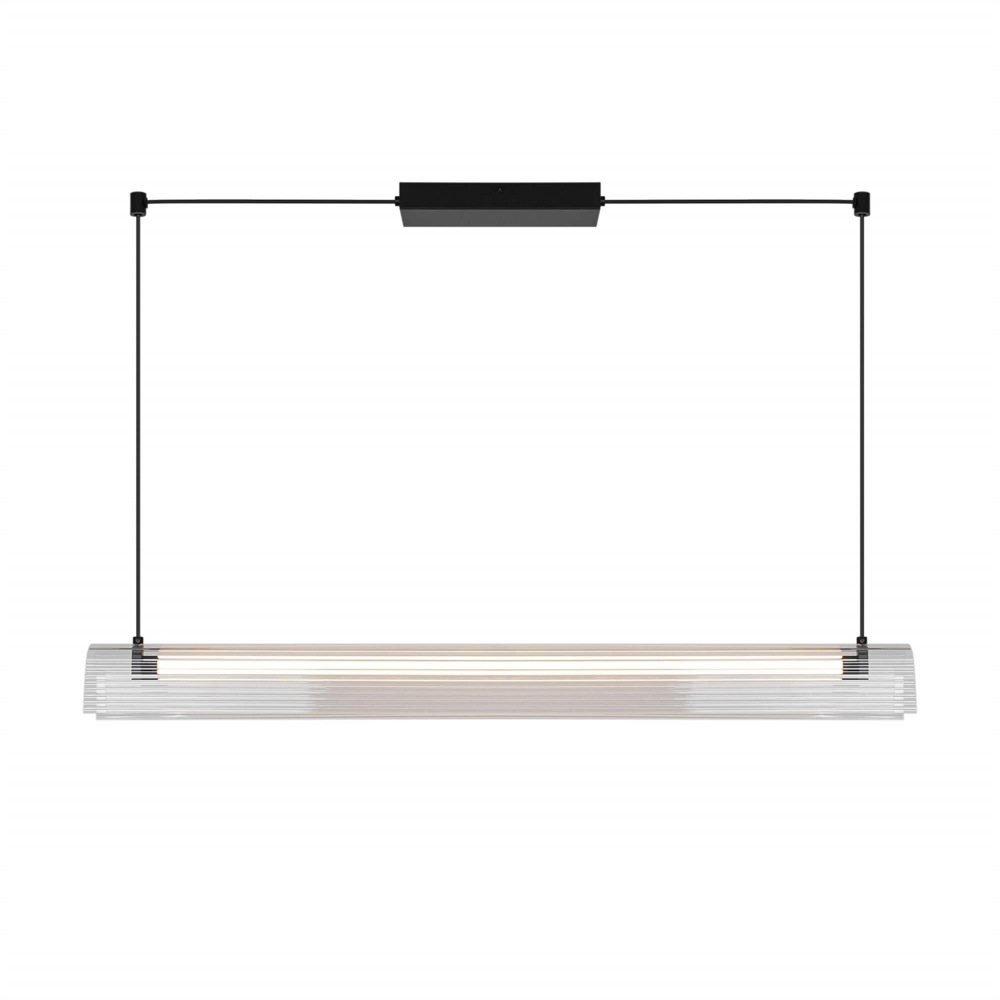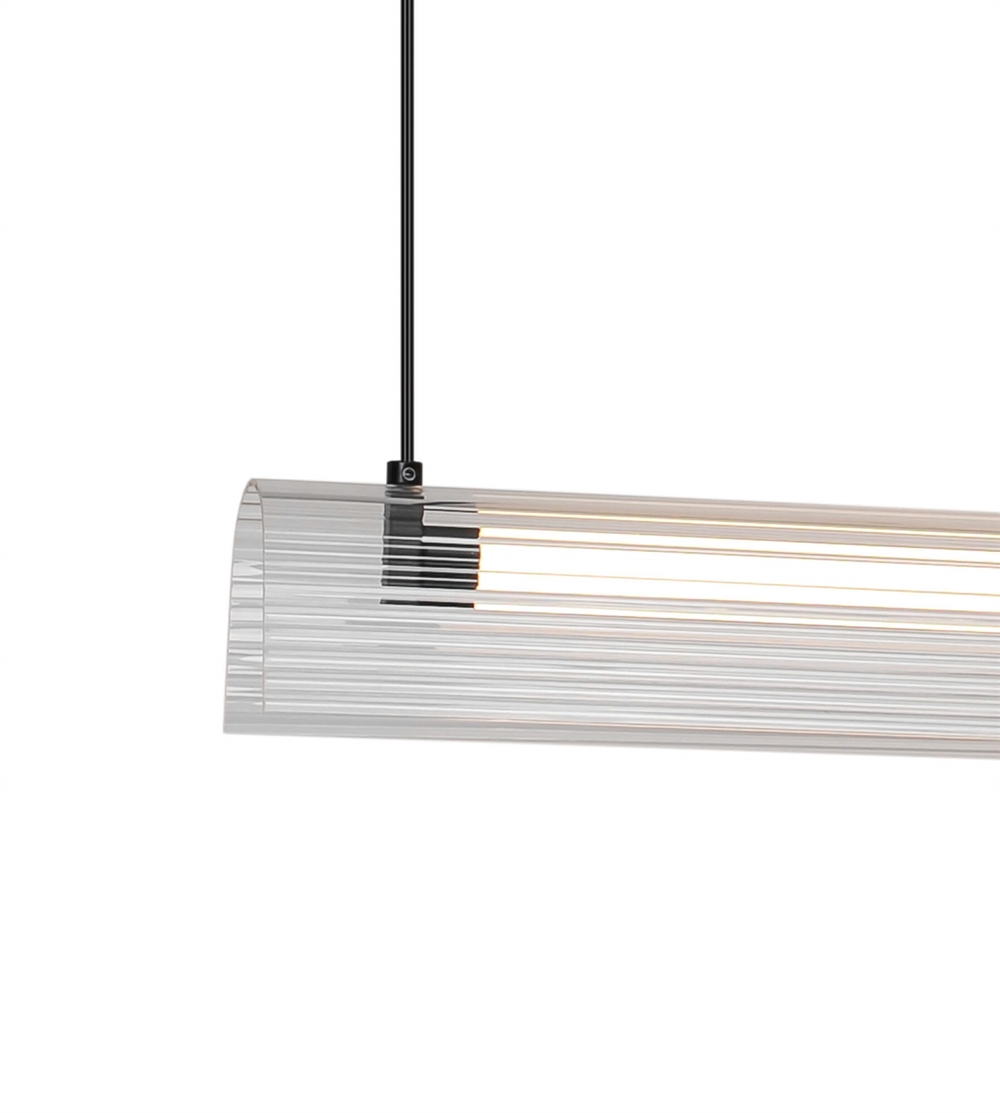 Met een zwarte afwerking, transparante kap en slank silhouet past Aliani in veel moderne interieurs. De langwerpige vorm maakt de lamp bijzonder geschikt boven de eettafel of het kookeiland.