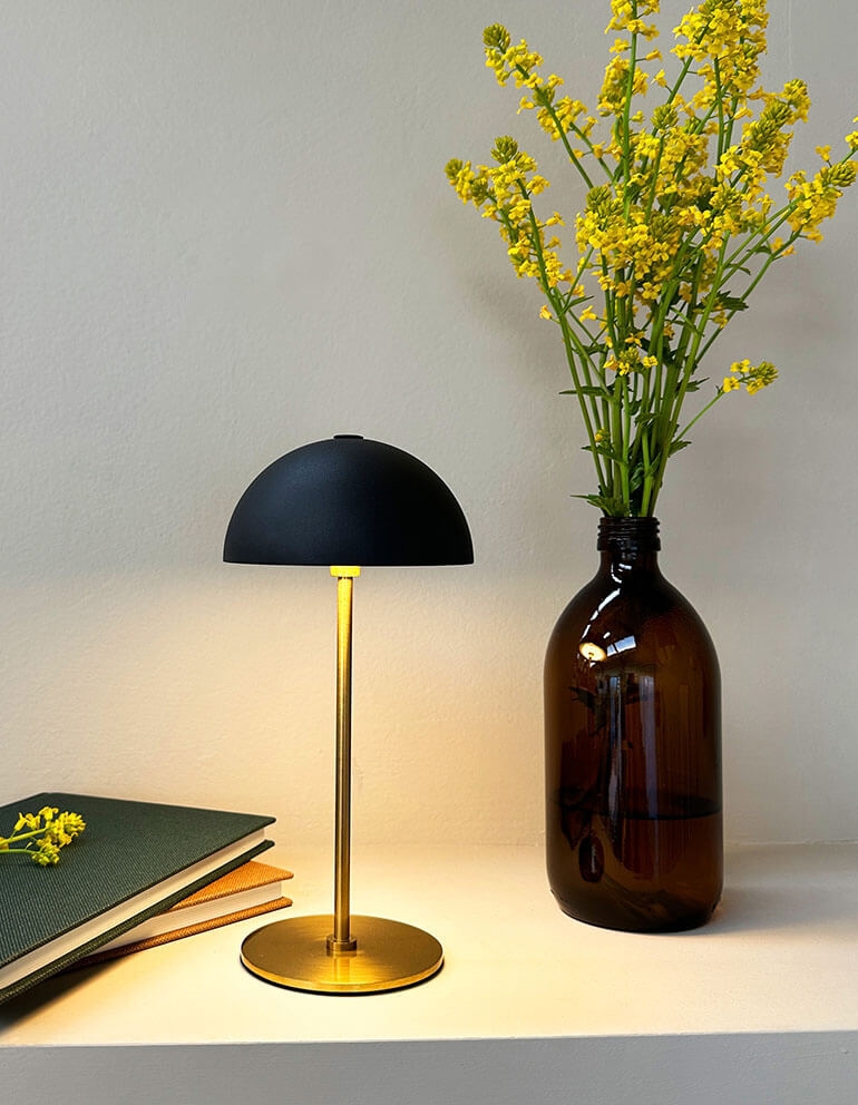 Dyberg Larsen Along LED tafellamp / batterijlamp, zwart/messing