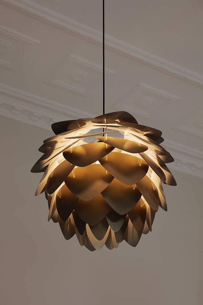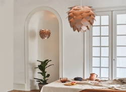 Aluvia medium moet worden gecombineerd met een ophangsysteem, dat apart wordt verkocht. Kies bijvoorbeeld uit de E27-ophangsystemen Cannonball, Cannonball Cluster 2 en 3, Cord Set, Cord Set Pro of Rosette van Umage. De wandophangsystemen Willow single of double van Umage passen ook bij Aluvia medium.