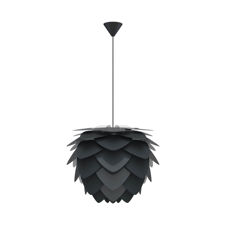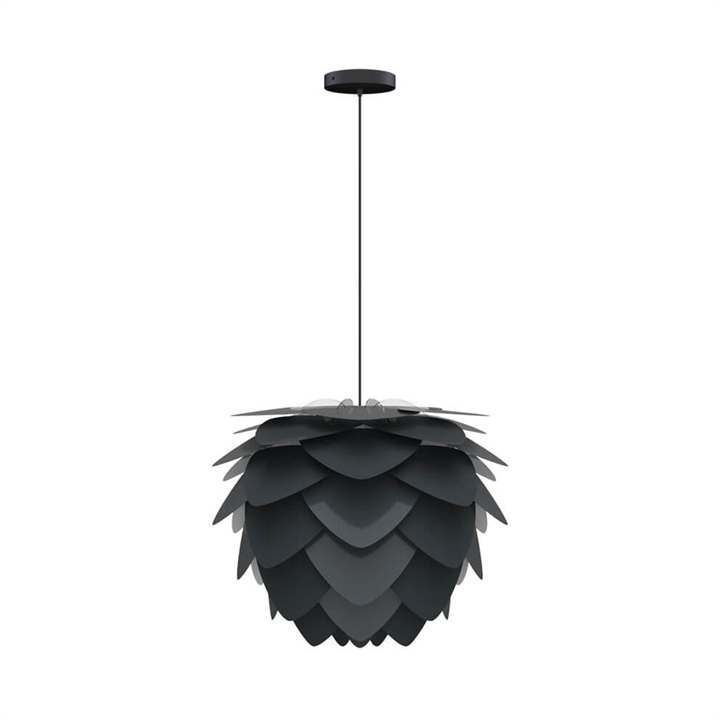 Aluvia medium moet worden gecombineerd met een ophangsysteem, dat apart wordt verkocht. Kies bijvoorbeeld tussen de E27-ophangsystemen Cannonball, Cannonball Cluster 2 en 3, Cord Set, Cord Set Pro of Rosette van Umage. De wandophangsystemen Willow single of double van Umage passen ook bij Aluvia medium.