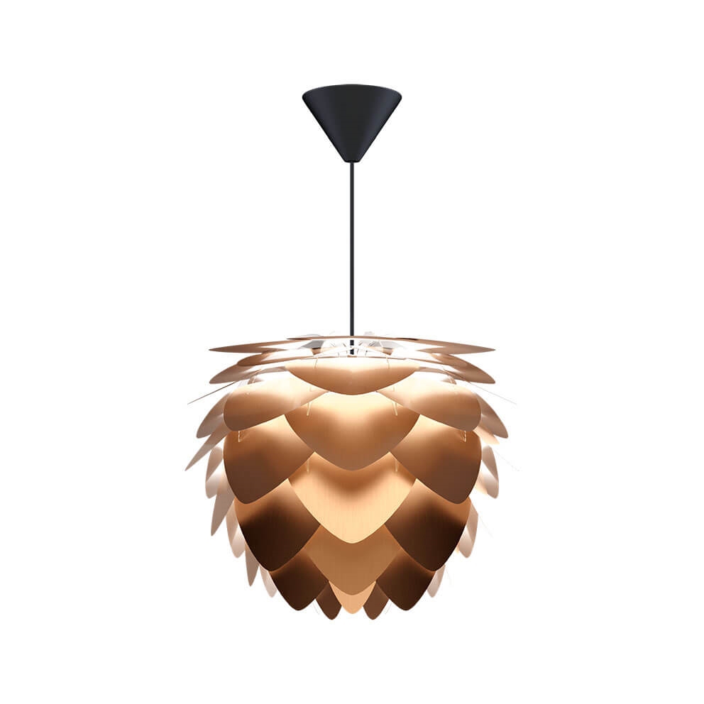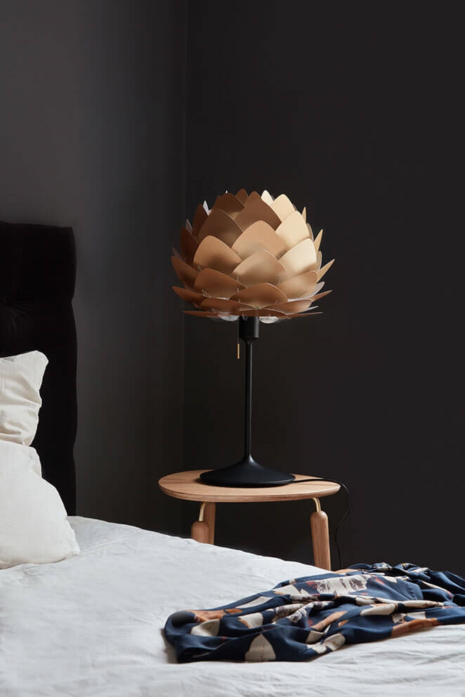 De lampenkap Aluvia heeft met zijn karakteristieke bladeren van aluminium een zowel licht als robuust ontwerp. De kap kan in combinatie met ophangsystemen of standaards van bijvoorbeeld Umage een prachtige hanglamp, wandlamp of vloer- of tafellamp vormen, die goed in veel interieurs past. Gebruik Aluvia om verlichting boven de eettafel te creëren met een klassieke uitstraling, die ook mooi zal staan in de andere kamers van het huis. De prachtige lampenkap is verkrijgbaar in meerdere kleuren en twee maten.