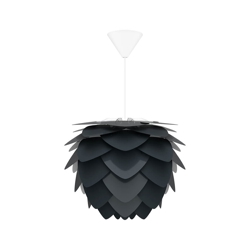 Aluvia mini moet worden gecombineerd met een ophangsysteem of standaard, die apart wordt verkocht. Kies bijvoorbeeld uit de E27-ophangsystemen Cannonball, Cannonball Cluster 2 en 3, Cord Set, Cord Set Pro of Rosette van Umage. De wandophangsystemen Willow, de vloer- of tafelstandaards Tripod of Santé wandbasis en Santé vloer- of tafelstandaards van Umage passen ook goed bij Aluvia mini.