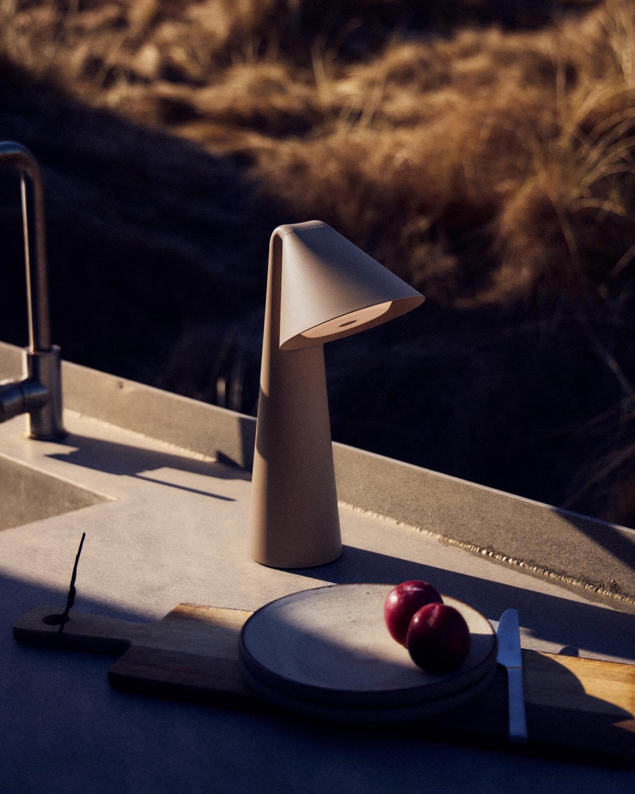 De draagbare tafellamp Ami, genoemd naar het Franse woord voor vriend, is een trouwe metgezel die je in elke omgeving kan vergezellen, zowel binnen als buiten. Gebruik Ami als verlichting op het nachtkastje, de plank of het terras en geniet van het zachte licht en uitnodigende ontwerp met elegante vormen.