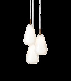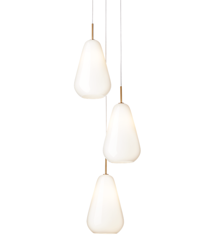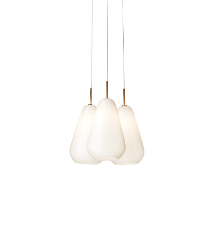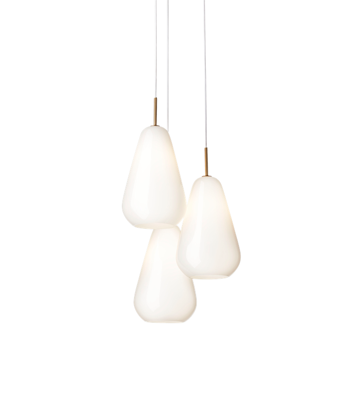 De elegante Anoli-hanglampen zijn van glanzend opaal mondgeblazen glas en roepen associaties op met een vredig, met sneeuw bedekt winterlandschap. Het sneeuwwitte glas benadrukt de eenvoudige lijnen van de lamp en de eenvoudige druppelvorm, die het zachte en gelijkmatige licht op de mooiste manier verspreidt.