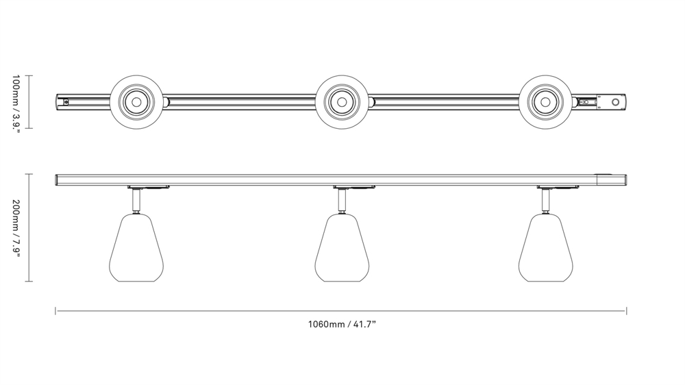 Anoli Spot Track rail met drie spots is ideaal als plafondlamp in ruimtes die behoefte hebben aan spotverlichting van hoge kwaliteit. De metalen kap heeft verwijzingen naar de vorm van een regendruppel en is geplaatst op een verstelbare arm. Dit maakt het samen met de plaatsing op de rail mogelijk om de lampen aan te passen, zodat het verblindingsvrije werklicht gericht kan worden. Gebruik Anoli Spot in de keuken of in een andere ruimte waar goede spotverlichting nodig is.