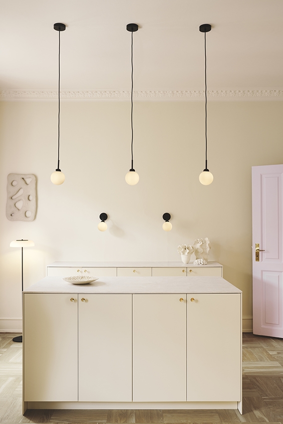 Je kunt meerdere Apiales 1 hanglampen op een rij of op verschillende hoogtes hangen om een groter effect in de ruimte te creëren.