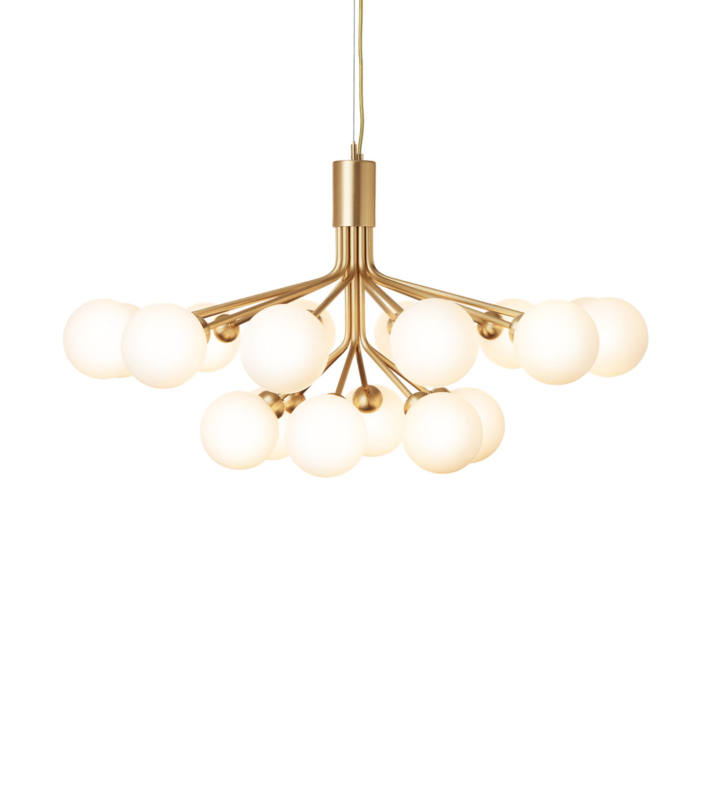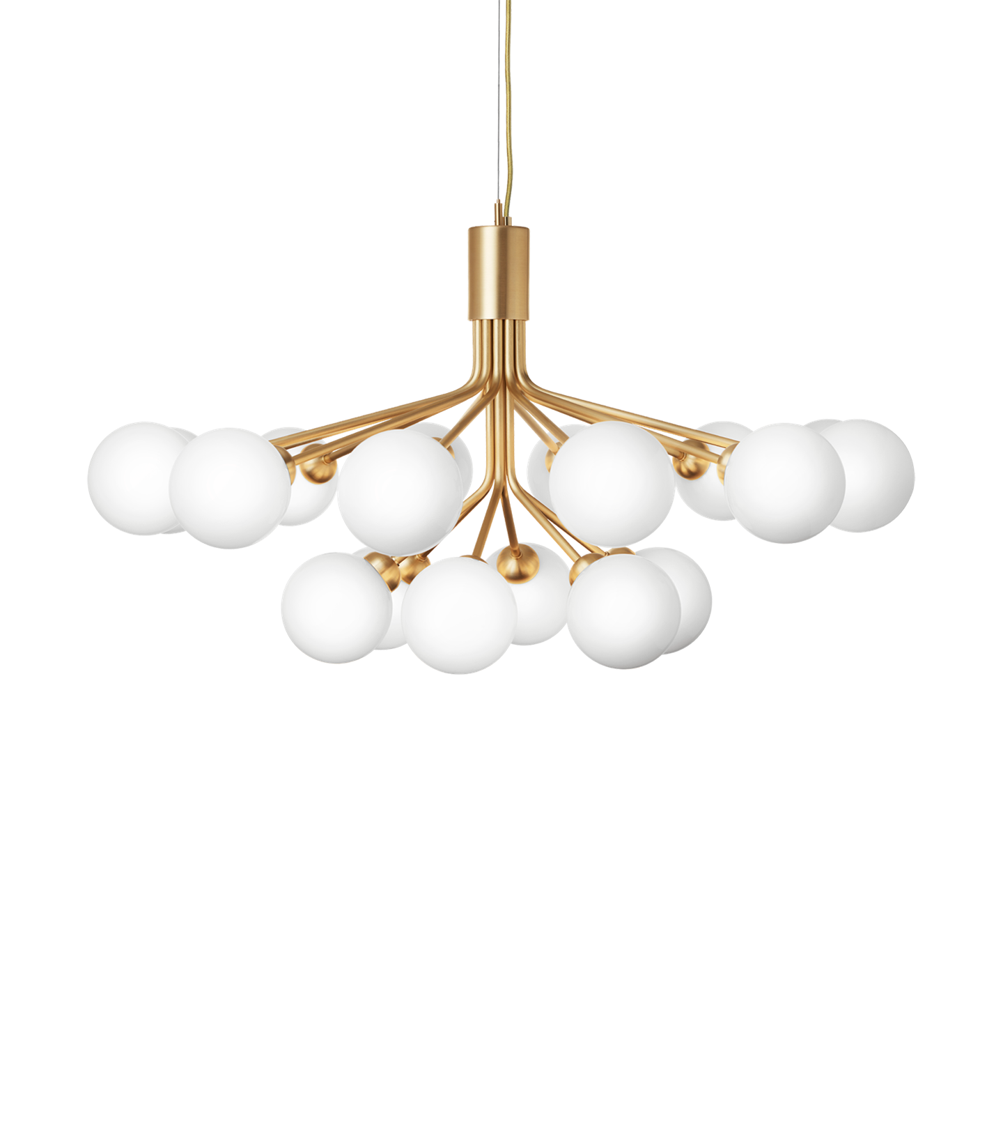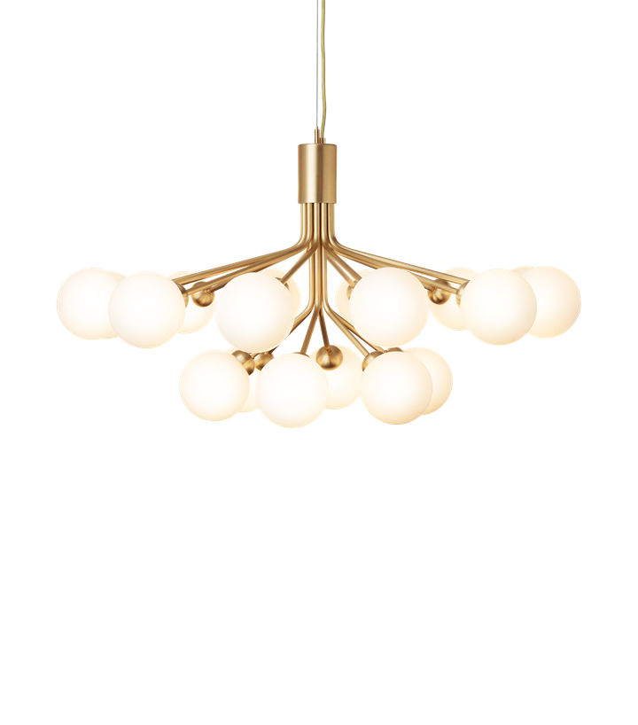 Apiales 18 kroonluchter, geborsteld messing/opal van Nuura - ontwerp door Sofie Refer.