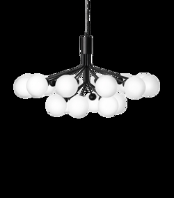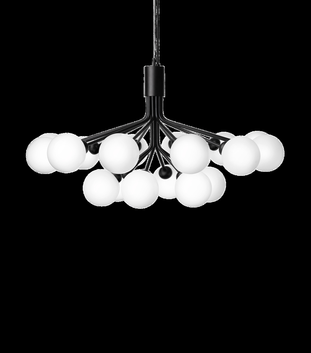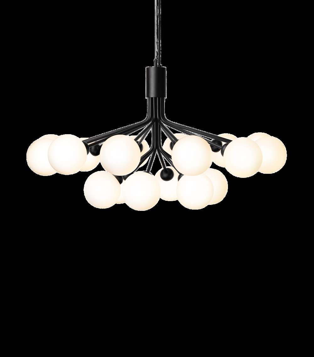 Apiales 18 kroonluchter, satijn zwart/opaal van Nuura - ontwerp door Sofie Refer.