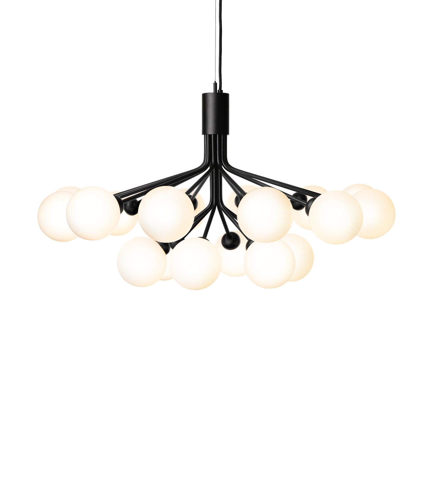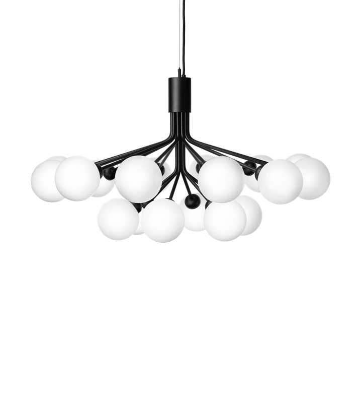 Apiales 18 kroonluchter, satijn zwart/opal van Nuura - ontwerp van Sofie Refer.
