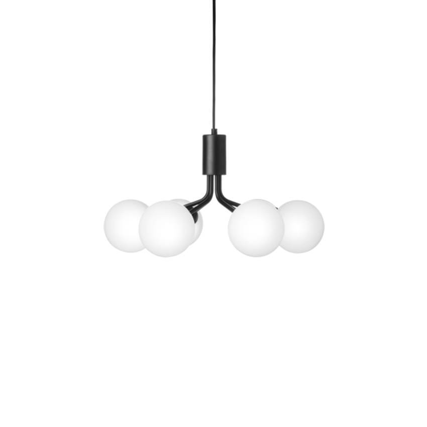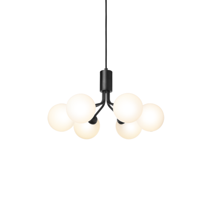 Nuura Apiales 6 kroonluchter, satijn zwart/opaal - ontworpen door Sofie Refer.