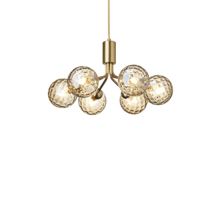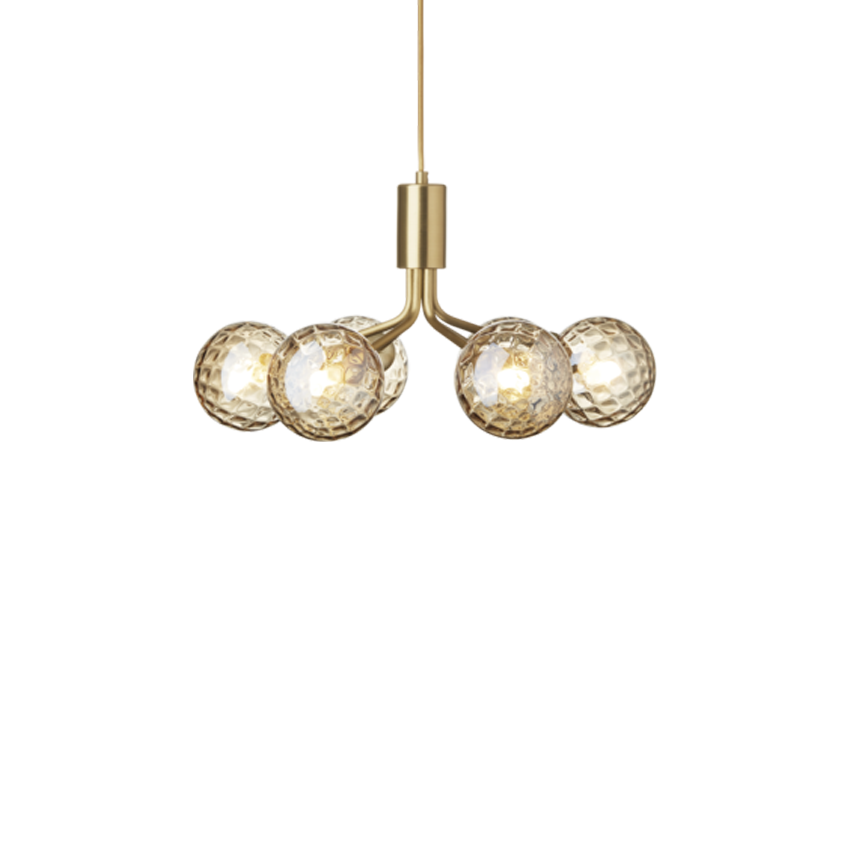 Nuura Apiales 6 kroonluchter, geborsteld messing/optic goud glas - ontworpen door Sofie Refer.