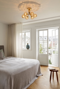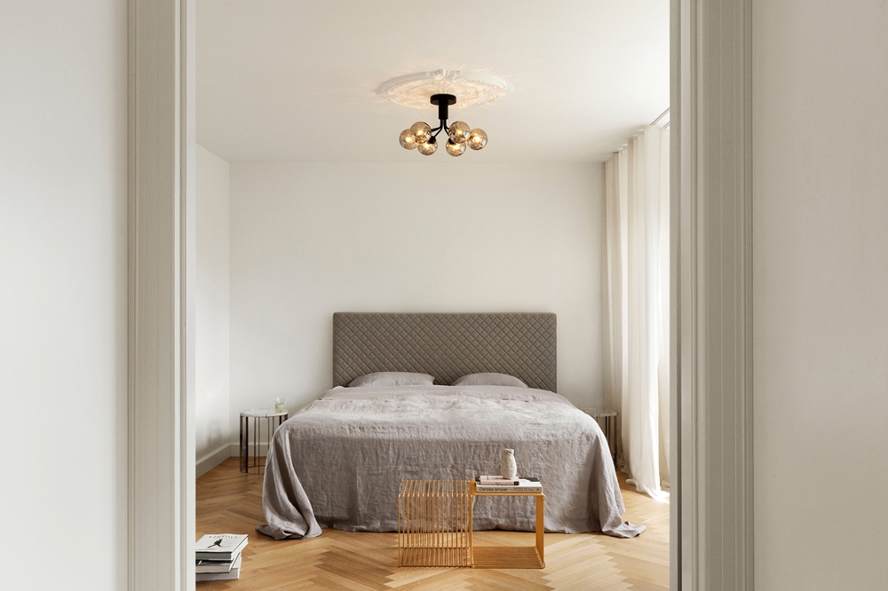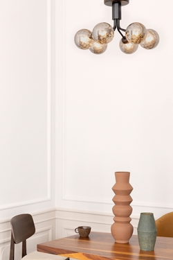 De Apiales 6 plafondlamp wordt direct aan het plafond gemonteerd en heeft een lage hoogte van 29 cm. Dit maakt de lamp zeer veelzijdig en maakt het nu mogelijk om een plafondlamp/kroonluchter te hebben waar het plafond laag is of in doorgangsruimtes.