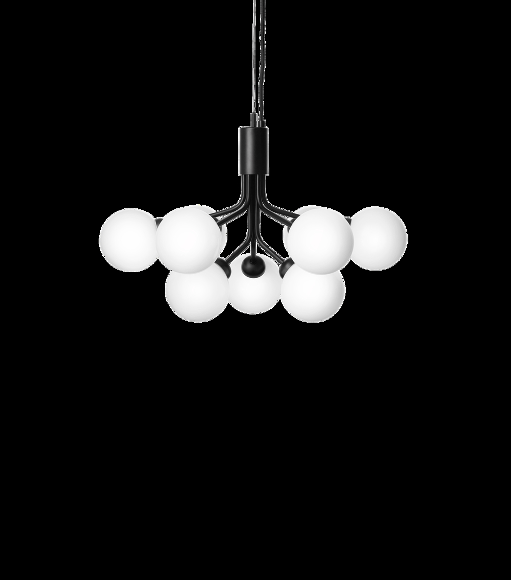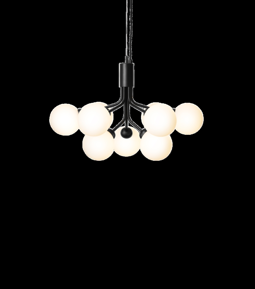 Apiales 9 kroonluchter, satijn zwart/opaal