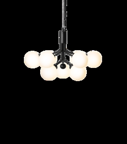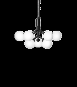 Apiales 9 kroonluchter, geborsteld satijn zwart/opaal van Nuura - ontwerp door Sofie Refer
