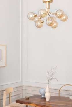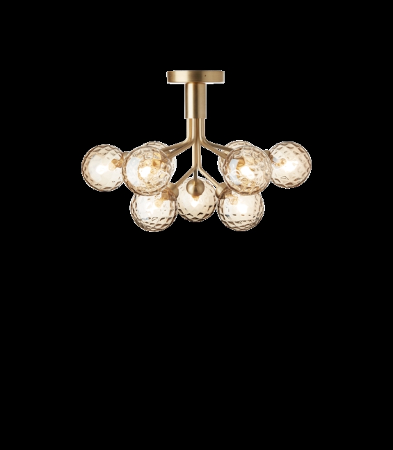 Apiales 9 plafondlamp wordt direct aan het plafond gemonteerd en heeft een lage hoogte van 40 cm. Dit maakt de lamp zeer veelzijdig - en maakt het nu mogelijk om een plafondlamp/kroonluchter te hebben waar het plafond laag is of in doorgangsruimtes.