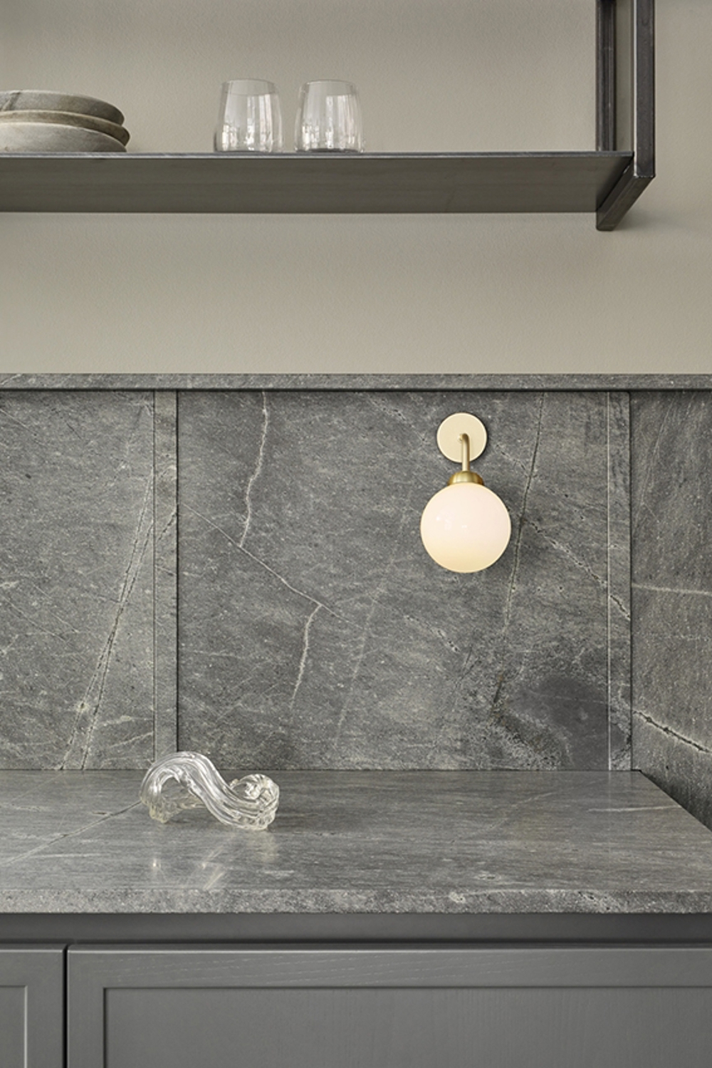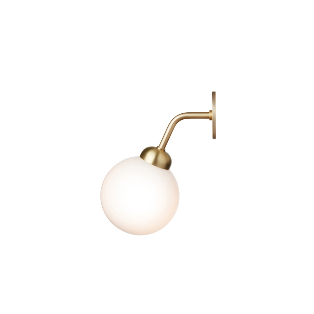 De Apiales wandlamp bestaat uit één mondgeblazen opaal glazen koepel en geborstelde messing details. De elegante wandlamp geeft een klassieke uitstraling aan de ruimte zonder andere elementen te verstoren.