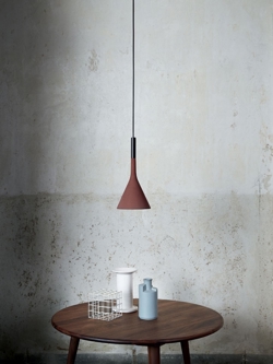 De lamp is verkrijgbaar in verschillende kleuren; grijs cement in zijn ruwe staat, een stijlvolle witte tint, een warme, intense bruin, een mooie olijfgroen, een stoffige geel en een baksteenrode kleur.