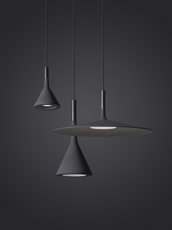 Foscarini Aplomb de hanglamp is verkrijgbaar in verschillende kleuren; grijs cement in zijn ruwe staat, een stijlvolle witte tint, een warme, intense bruin en nu ook in antraciet.
