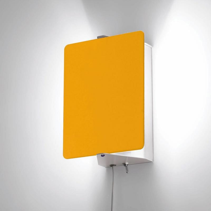 Applique À Volet Pivotant wandlamp heeft een frame gemaakt van aluminium, dat wit is geschilderd, en een klep aan de voorkant, verkrijgbaar in de kleuren; rood, geel, blauw, zwart, aluminium en roestvrij staal.