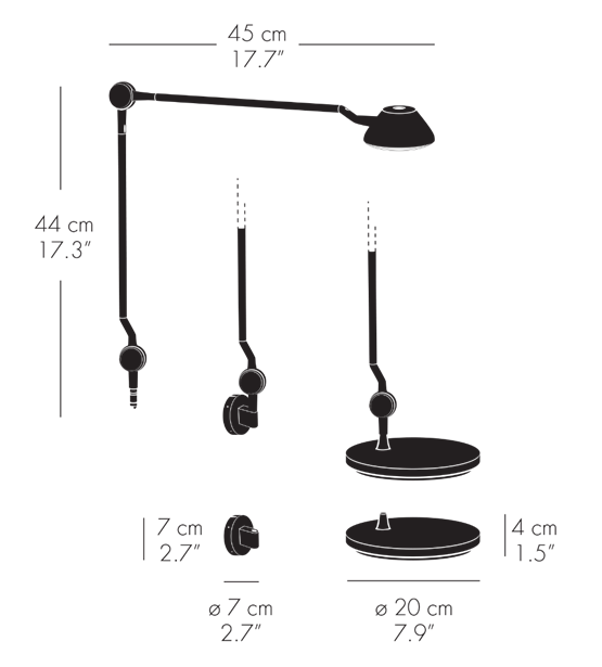 AQ01 tafellamp, witAQ01 lampen, afmetingen