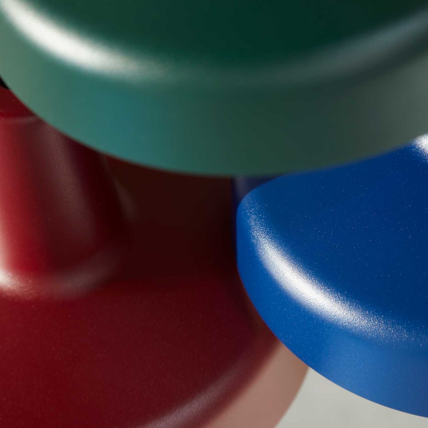 Arigato lampen bestaan uit een lichaam van stalen buizen en een aluminium kap. De afwerking was voorheen alleen in mat zwart of wit poedercoating - maar nu zijn er ook varianten in blauw, rood en groen.