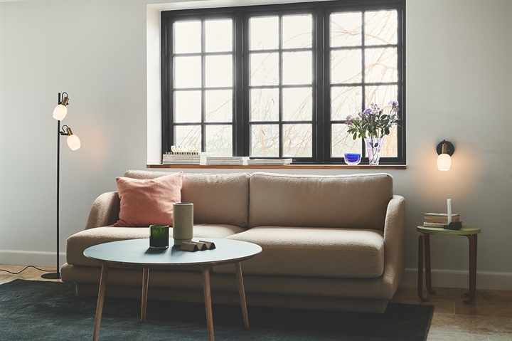 Arild vloerlamp combineert prachtig de opaalwitte kappen, de bruine messing details en de kleur mat zwart. De vloerlamp heeft een modern en functioneel design. De kappen zorgen ervoor dat het licht gedempt en diffuus lijkt. Bovendien zijn ze verstelbaar, waardoor het mogelijk is om gericht licht te krijgen.