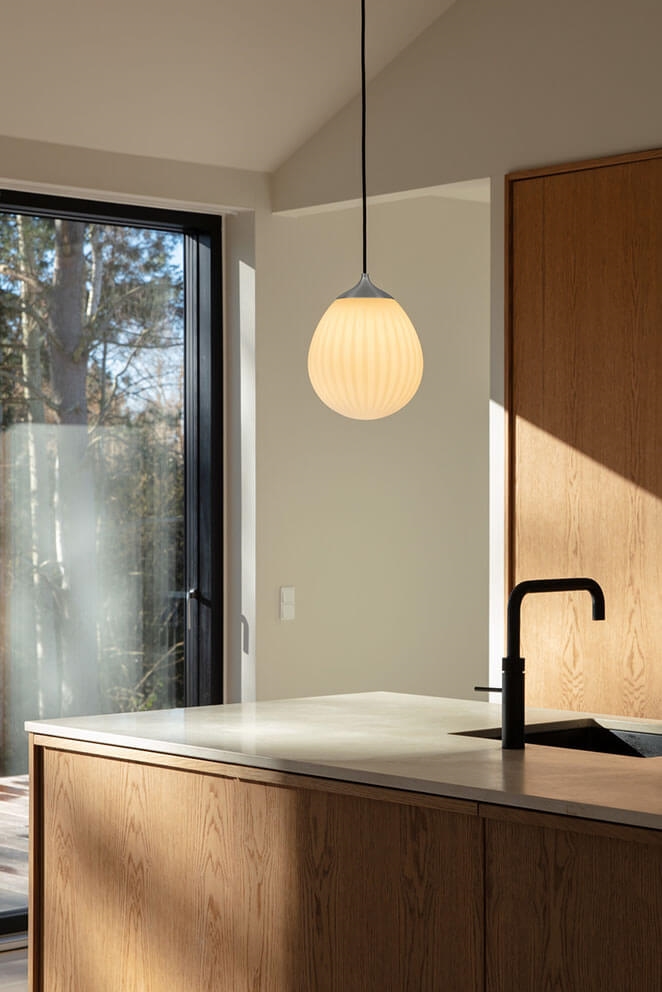 De lampenkap moet worden gecombineerd met een ophanging, die apart wordt verkocht. Kies bijvoorbeeld de E27-ophangingen Cannonball, Cannonball Cluster 2 en 3, Cord Set, Cord Set Pro of Rosette van Umage.
