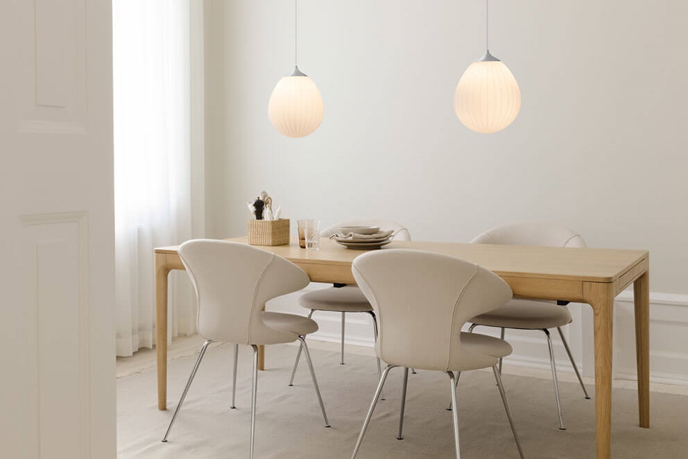 De lampenkap moet worden gecombineerd met een ophanging, die apart wordt verkocht. Kies bijvoorbeeld voor de E27-ophangingen Cannonball, Cannonball Cluster 2 en 3, Cord Set, Cord Set Pro of Rosette van Umage.