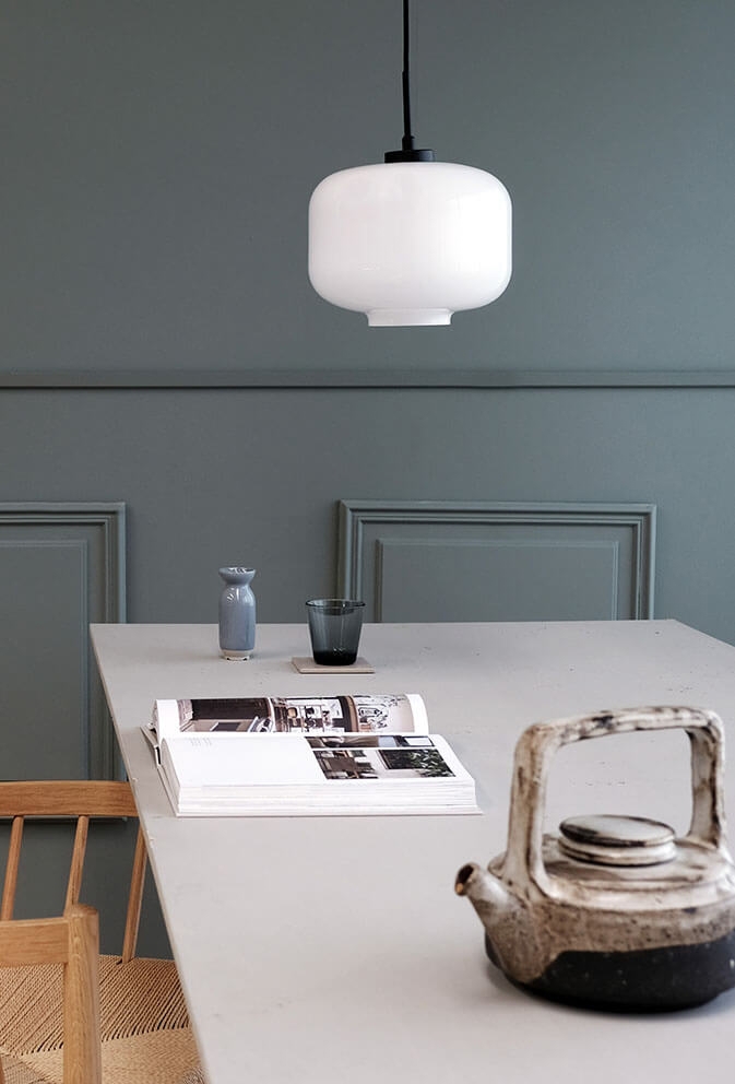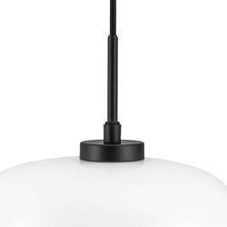 Arp de hanglamp met lampenkap van opaalglas en ophanging van mat zwart metaal is klassiek design met een aangenaam licht. De lamp past in zowel moderne als klassieke interieurs en kan alleen of in groepen hangen in de woonkamer, keuken, slaapkamer of elke andere plek waar goede verlichting nodig is.